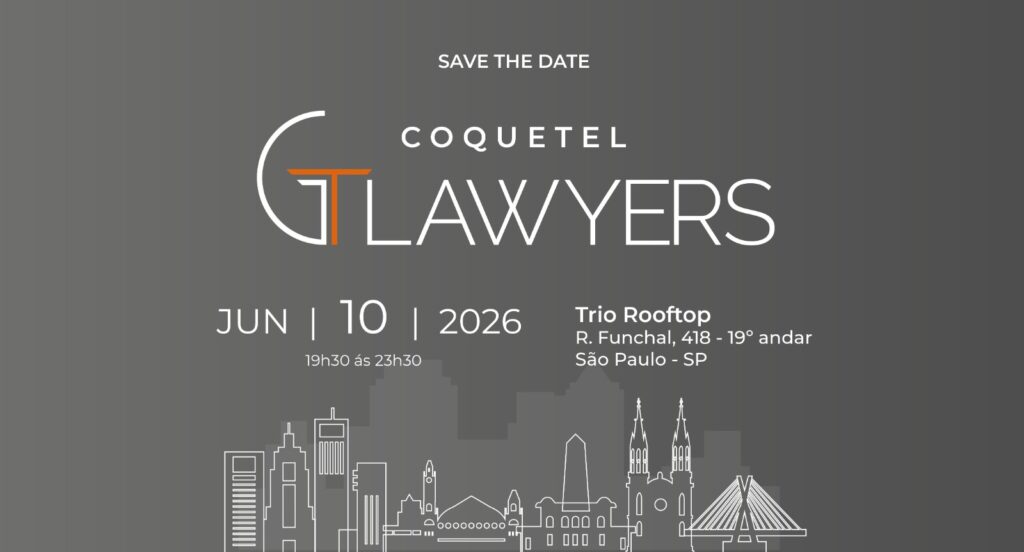 Coquetel GTLawyers – Save The Date 10/06 O GTLawyers tem o prazer de convidá-los para nosso coquetel, em comemoração às relações que construímos juntos ao longo dos anos. Será uma ocasião para trocarmos experiências, estreitarmos laços e celebrarmos, juntos, os projetos que nos unem.